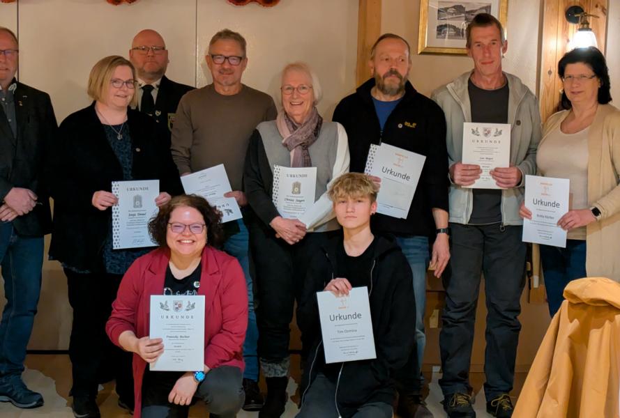 Am 15.02.2025 fand in der Waldgaststätte "Alten`s Ruh" unsere Jahreshauptversammlung statt. Unser 1. Vorsitzender Bernd Scharkowsky konnte 36 Mitglieder zur Jahreshauptversammlung begrüßen. Vom Kreissportschützenverband Neustadt a. Rbge. (kurz: KSSV) nahm Jens Stuhlemmer, stellv. Vorsitzender, als Gast an der Versammlung teil. Er überbrachte die Grüße des gesamten Vorstandes des KSSV und übernahm die Auszeichnung von folgenden Vereinsmitgliedern: