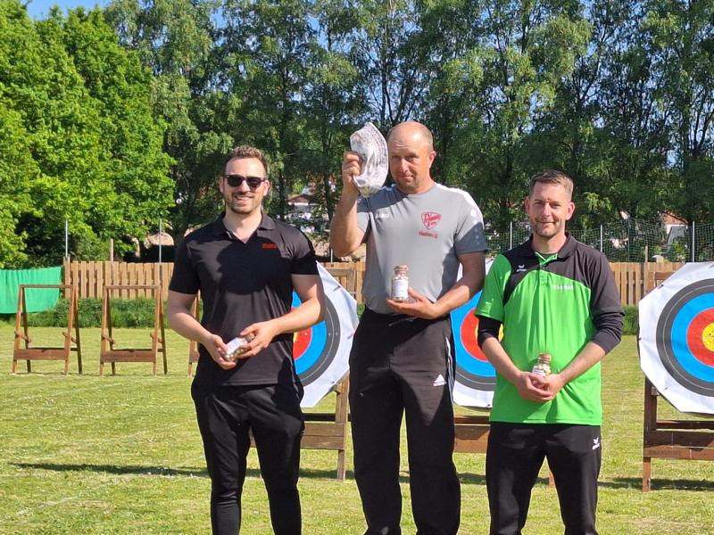 In der Klasse "Herren Langbogen" ließen die drei Erstgenannten alle anderen Teilnehmer hinter sich zurück.. Hans-Hermann belegte mit 468 Punkten den 1. Platz. Dahinter folgte Bernd mit 442 Punkten auf dem 2. Platz. Sebastian erzielte ein Ergebnis von 440 Punkten und landete damit auf Platz 3. Olaf kam mit 260 Punkten in der Klasse "Herren Jagdrecurve" auf den 19. Platz.
