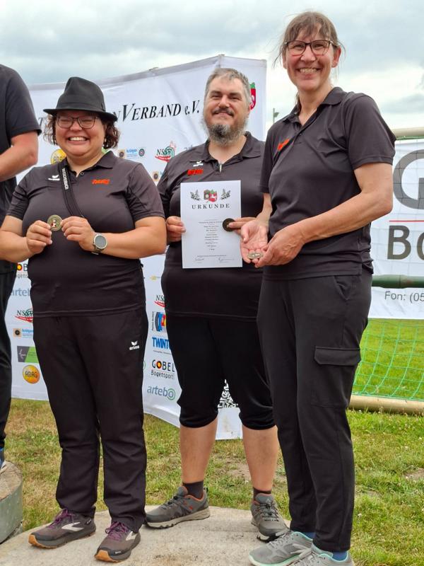 Eine Anerkennung bekamen auch die Teilnehmer*innen an den Deutschen Meisterschaften 2024 Britta Körber, Bernd Kellermeier und Tim Ozmina.