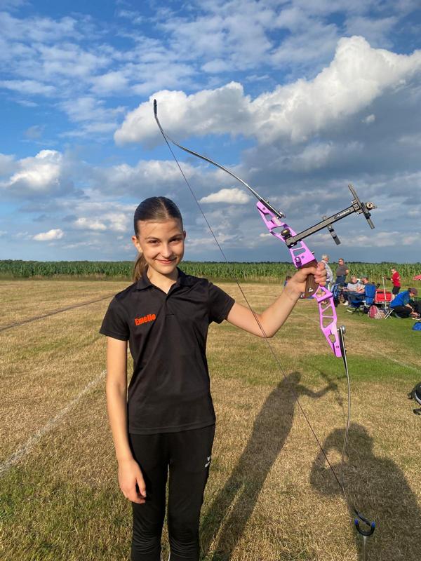 Emelie Günther setzte sich in der Klasse "Recurvebogen Schülerinnen B" mit 539 Ringen gegen ihre Mitstreiterinnen durch, errang damit den 1. Platz und ist Landesmeisterin.