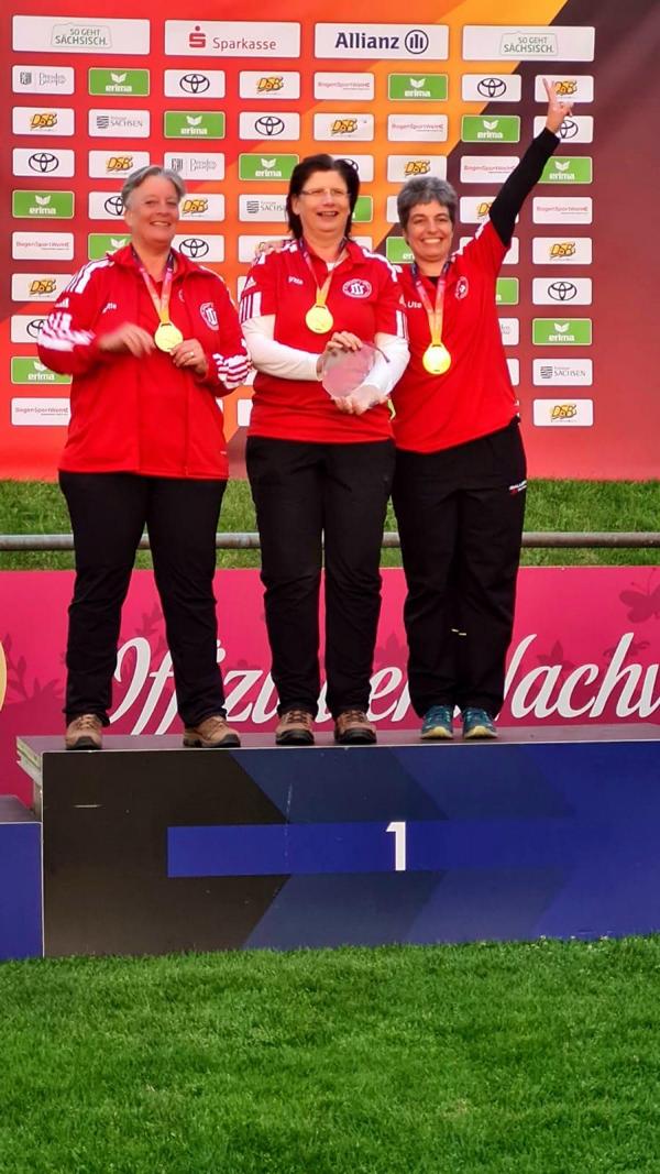 Vom 31.07. bis zum 03.08.2025 wurden in Dresden die Finals 2025 ausgetragen. Unsere Vereinskameradin Britta Körber hat im Team mit Ute von Schilling und Brigitte Curtis in der Klasse "Recurvebogen Master weiblich" den 1. Platz belegt. Wir gratulieren herzlich!!!